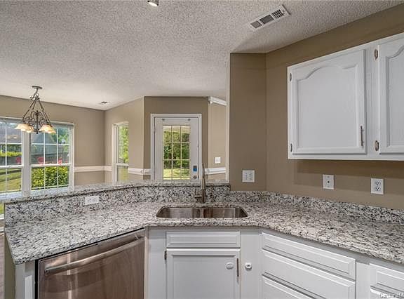 Great location in desirable Buckingham Community next to Emerald Lake golf course and convenient to I-485. This charming ranch home, on a cul-de-sac lot, offers 3 bedrooms and 2 baths with an open floor plan. Peace of mind with Roof, HVAC, and Water Heater all new in 2017. Beautiful recent updates include granite kitchen counter tops, Stainless Steel appliances including refrigerator, painted kitchen cabinets, laminate wood flooring, carpet, and paint in several rooms. Enjoy your evenings relaxing on your covered back porch or walking the community trails. HOA is voluntary. Bring your buyers and make this their new home!