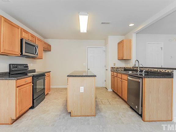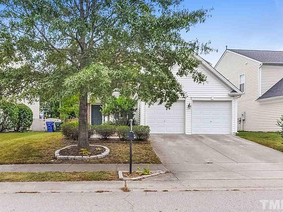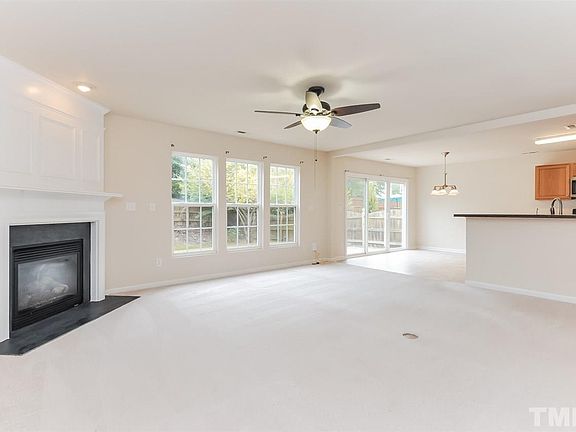 This Raleigh two-story offers a fireplace, an open patio, and a two-car garage.