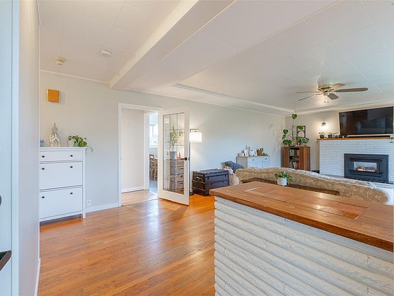 Oak floorsNatural gas fireplaceSeparate dining areaCozy modern kitchenStainless steel appliancesCovered deckOffice area