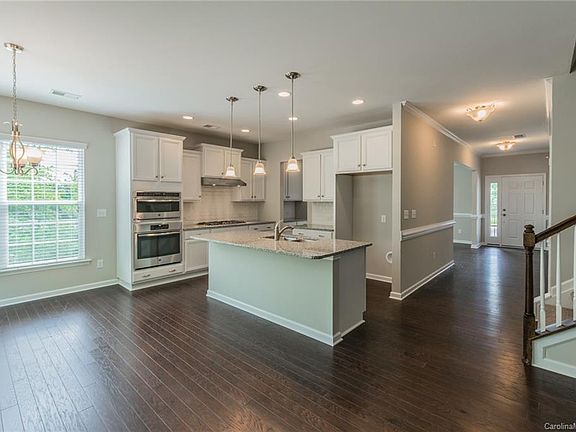 Welcome to the Hanley, a popular floorplan with master bedroom upstairs along with three secondary bedrooms. Laundry room is conveniently located upstairs. Visitors will enjoy staying with a very private guest suite downstairs. Open concept floorplan with breakfast bar, butlers pantry, and light chiffon colored cabinets with and beautiful granite counters. Dining room with tray ceiling. Hardwood floors throughout downstairs. You will feel at home on this private lot with rear deck.