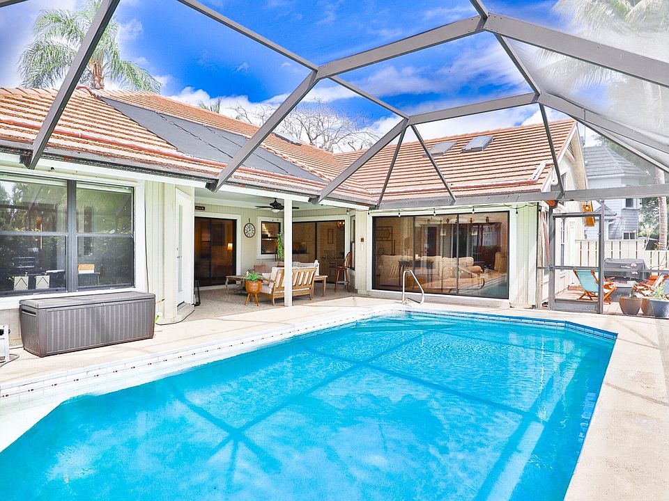 Located in the charming and best kept secret in Palm Beach Gardens, low hoa and walking distance to many restaurants, the new tennis center, park and soccer fields. This is an open concept living all on one level. Gorgeous travertine flooring and new high pile carpet only in the bedrooms with over 2500 square feet of living area. Enjoy sitting on your porch enjoying the view of your beautiful pool with covered Lanai. Make this your next home.