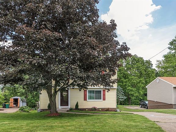 Updated vinyl siding and all new windows add to the curb appeal of this 2 story 4 bedroom home. Enjoy privacy to the rear backing to woods. Enter through new storm door and etched glass entry door into ceramic foyer. Be impressed by new wood like laminate and neutral paint in spacious living room.Ceram kitchen offers new stainless stove & refrigerator,double pantry cabinets, neutral countertop and opens on to breakfast room w/new wood like laminate.Formal din rm features hardwood floor & french doors leading to recently stained deck. Updated powder room has white vanity and brushed nickel faucets & fixtures. Newly carpeted steps lead to 4 bedrooms up, all with fresh paint & new carpet. The master also offers a walk in closet. New hall bath boasts marble like ceramic, a new granite topped vanity, new commode,light and fixtures. Finished lower level game room and office. Large laundry & storage area. Concrete drive w/rear parking, shed. New200 amp service-Newer H20 tank-Well maintained!