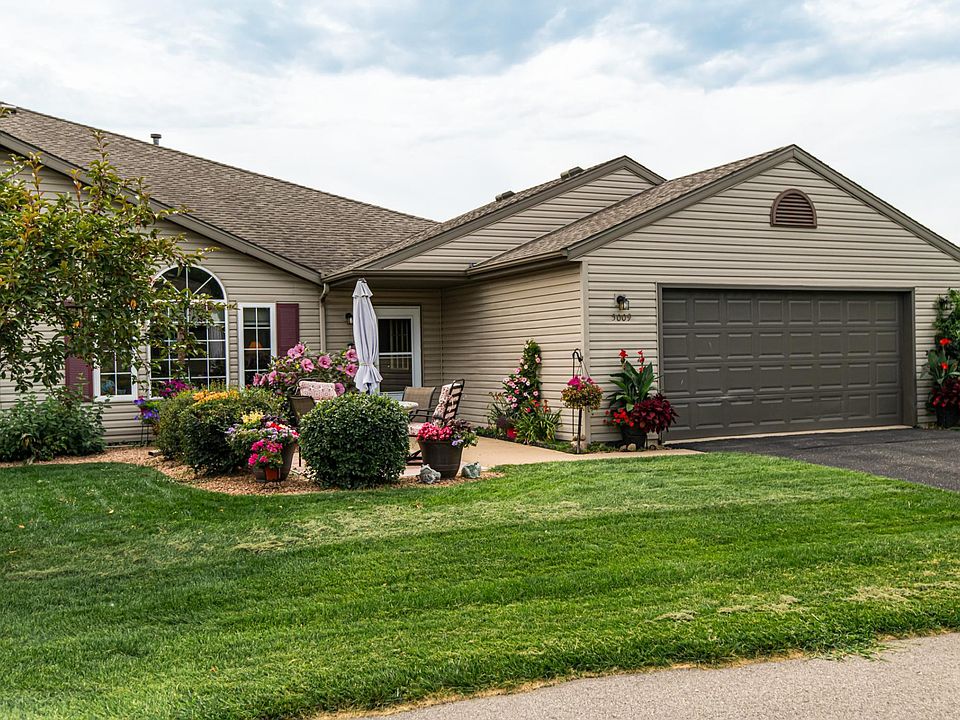 Beautiful one-level townhome on a cul-du-sac with large 2-car garage. 2 bed, 2 bath, well-kept home with awesome outside patio area which adds to living space. Open floor plan shows off all usable entertaining space and large kitchen. Minutes to downtown Rochester and all it's amenities like dining, shopping, trails and the Mayo Clinic.