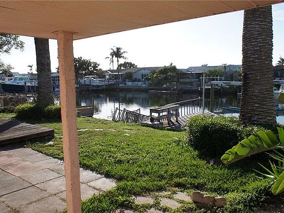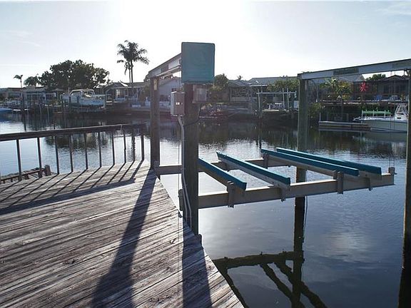 Quick no-bridge direct access to the Gulf of Mexico in under 15 minutes from the private backyard dockage of this Gulf Harbors waterfront home. Enjoy the tropical lifestyle from its west rear-facing location, watching sunsets from the large screened in lanai. A 10k lb boat lift and stationary deck extend out over the 61 feet of seawall where you can lounge enjoying a cool drink while basking in the sun. The sizable backyard has plenty of room to add a pool. Floorplan includes living/dining room combo, large 27ft long family room with stone fireplace, original 2-bedrooms with 2-bath, plus a bonus 3rd bedroom/den/family room (garage conversion) for total 1796 sq ft of living space. With basic renovation this property could be your own piece of paradise just as you like it. Gulf Harbors community also offers: its private sandy beach right down the road on the open gulf with covered huts, picnic tables, grills, showers, parking, restrooms; 2 boat ramps & yacht club. There are several great nearby boating explorations to the pristine gorgeous all-natural barrier islands beginning directly off Gulf Harbors with Anclote Key, stringing south to Honeymoon, Caladesi, Ft Desoto and onward to the FL Keys, have been rated in the nation's top best beaches. Plus close by Cotee & Anclote river mouths 15 minutes to north & south provide waterfront restaurants, live music, bars, with docks for mooring your boats while having fun! Excellent fishing, diving, water sports, shelling, island exploring right outside your door.