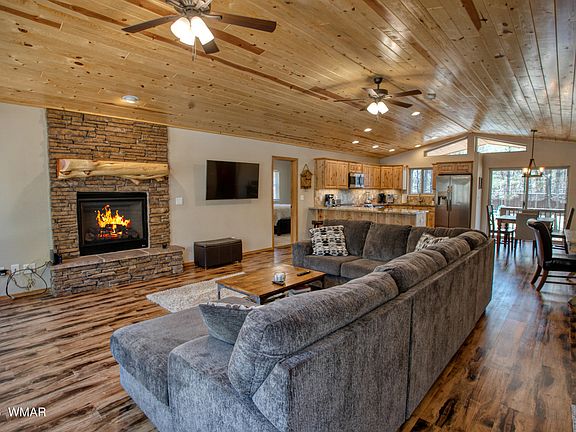This is the cabin you have been waiting for - Built in 2021, being sold furnished, in the Pinetop Lakes community. Beautiful and spacious 2 bedrooms, 2 bathrooms plus one car garage. Well built features include: open & split floor plan, vaulted T&G ceilings, fireplace, ceiling fans, granite countertops, easy maintenance laminate floors, laundry room, large covered back & front decks. Lakes Recreation includes: pool, spa, fitness center, tennis and pickleball courts, club house with social events. Everything to enjoy the cool mountain lifestyle.