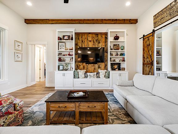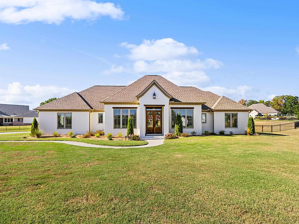 ONE LEVEL CUSTOM HOME ON 1.39 ACRE LOT IN THE STABLES! This custom built home features 2 primary suites on separate ends of the home, complete with walk-in closets and custom tile showers. The open kitchen features a spacious island with breakfast bar, gas range, timeless finishes, and a massive walk-in Butler’s pantry. The living room includes wood detail on the ceiling and built-ins with a very unique window seat, creating a cozy feel for all your guests. The designated office has 12 ft ceilings, built-ins and a barn door, making working from home a delight. The main primary suite is flooded with natural light and includes a tray ceiling and drop down vanity in the bathroom. Wood style ceramic tile floors adorn the majority of the home and a large laundry and mudroom make organization a cinch. A beautiful covered back porch features a gas fireplace and opens to a fenced back yard that is ready for your pets, kids or pool! Gated community in Bryant Schools!