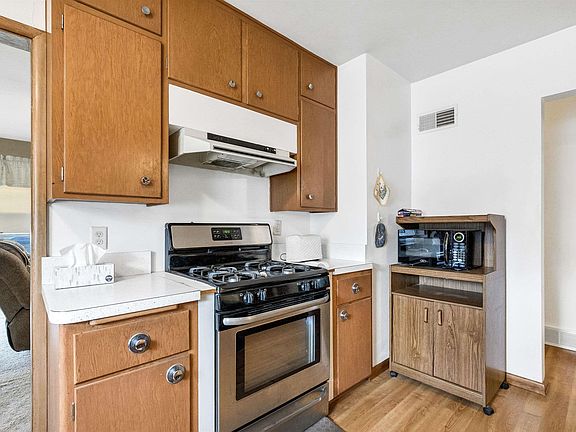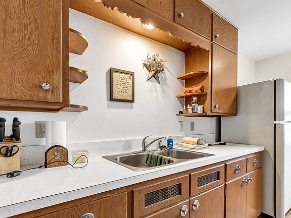 Perfect house close to lots of amenities and shopping. As you enter this home, you are welcomed into a spacious living area. With enough room for seating, a television and other furniture, this space is ideal for relaxation and entertaining guests. The living area flows seamlessly into the kitchen, which is equipped with essential appliances such as a stove and refrigerator. Great sized dining area off of the kitchen has access to the backyard and patio. The large primary bedroom has 2 double closets and a ceiling fan. Additionally, this house offers other amenities in the lower level with a laundry area, additional storage space and family room with wood burning fireplace plus a newer furnace and water heater. Overall, this 2 bed 1 bath house with a 2 stall garage is a delightful and inviting property that offers comfortable living spaces and essential amenities.