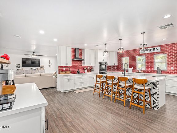 The best value in Scottsdale-85254! Seller may carry! Fall in love with this spectacular, one-of-a-kind fully updated property with a large heated diving pool, nestled on a serene cul-de-sac! NO HOA! A great property for a Short-Term Rental or a large growing family. You'll be greeted by gorgeous curb appeal. Discover a captivating interior featuring bountiful natural light, soothing palette, wood-look flooring, high-vaulted ceilings, & dazzling light fixtures. You'll also find an enchanting beehive fireplace for cozy gatherings or larger social occasions! The stunning chef's kitchen boasts a double wall oven, SS appliances, quartz counters, white shaker cabinets, two sinks, subway tile backsplash, & an island outfitted with a breakfast bar, creating the perfect spot for casual dining or creating the perfect spot for casual dining or a morning coffee.