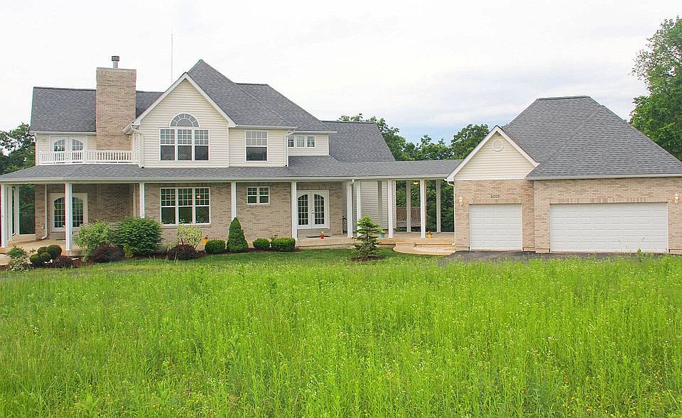 This gorgeous custom built 5 bedroom, 5 full bath home is nestled on 6.5 acres. From the wrap around covered porch, to the unique angles of each room, you are sure to be impressed. The gourmet kitchen offers granite countertops, stainless steel appliances, 2 breakfast bars (one is double tiered with a glass top), custom cabinetry with crown molding, and a breakfast room that offers access to the covered patio. The open great room features a custom woodburning stove. Main flr master suite features cathedral ceiling, spacious walk in closet, private balcony overlooking the inground pool, full luxurious bath, and linen closet. On the main flr you will also find the laundry room and a full bath. Upstairs features a loft/rec room, and 3 more bedrooms. Bedroom 2 boasts cathedral ceiling, double closets, full bath with vanity and a balcony. Bedroom 3 features a walk in closet and private full bath as well.