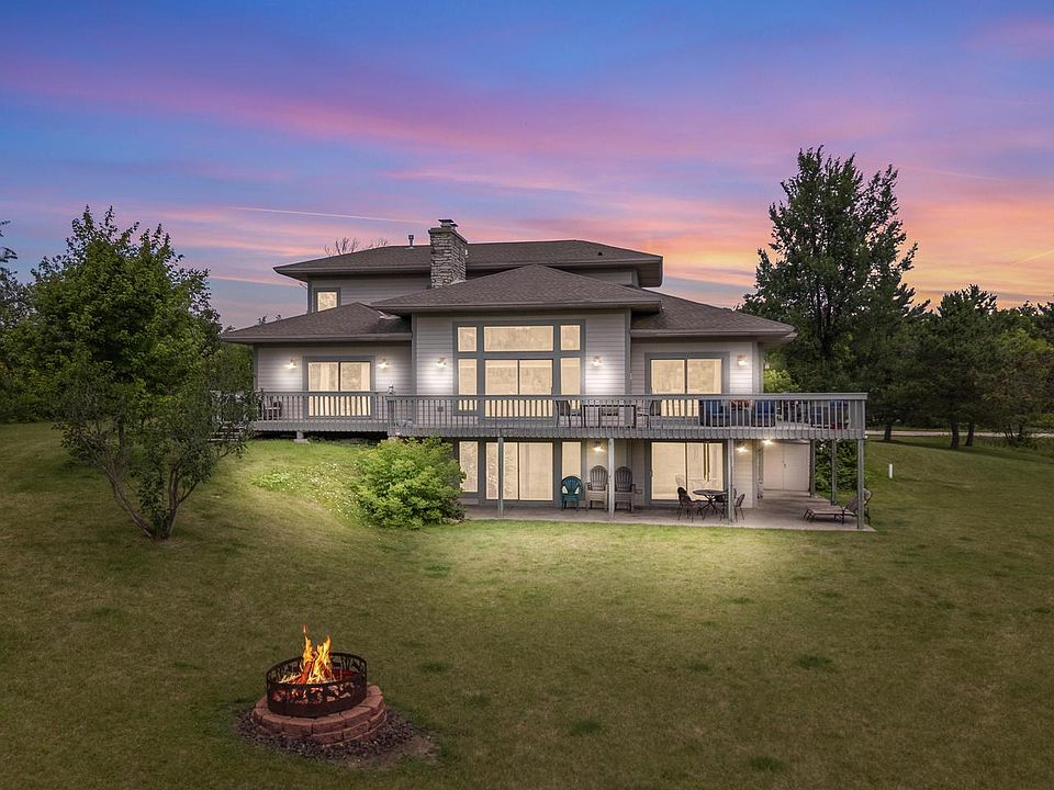 Prairie-style design meets peaceful natural surroundings in this beautifully crafted home near Holy Hill and the Kettle Moraine State Forest Loew Lake Unit. Oversized windows bring the outdoors in, with an open-concept layout that flows from the kitchen to the dining area and a living room featuring soaring 14 ft ceilings. Step outside and sit on your wraparound deck with a peaceful view of your private backyard. The master suite offers a walk-in closet and bath with jetted tub. Scenic walking trails for subdivision residents to enjoy.