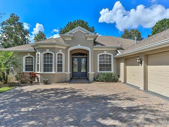 Luxury Windjammer 3 bed/3 bath/3 car/pool home with a den, located on the 2nd hole of the Hernando Oaks Golf Course. Formal living room and dining room. Crown molding. Tray ceilings. Lovely granite kitchen with gas stove, newer stainless steel appliances, maple cabinets, breakfast bar, & island with pot rack. Large family room with gas fireplace. Master suite with walk-in shower, dual vanities, soaking tub, granite counters & walk-in closets. Recently refinished salt water pool/spa with travertine pavers & re-screened in 2016. Pool bath. Laundry room with sink & cabinets. Wiring in place for large screen TV in family room. Tile recently sealed. Side entrance garage with brick paver driveway.