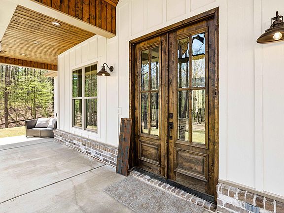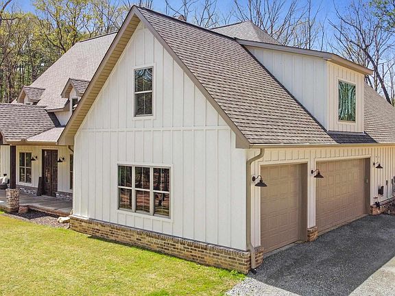 Overlooking a creek and wildlife, this breathtaking modern farmhouse offers rustic charm and contemporary luxury. Enjoy the peaceful views from the porch, then step inside to a grand vaulted living room with rustic wood beams and a brick-accented fireplace, island, and backsplash. The chef’s kitchen is a dream, featuring a commercial-grade fridge, gas stove, oversized island, & sink overlooking the private backyard—all surrounded by ample granite countertops. And don’t miss the massive walk-in pantry, practically a room of its own! The split floor plan offers privacy, with two spacious bedrooms & full bath on one side, while the primary suite steals the show with its vaulted ceilings, wood beams, and spa-like bathroom. Enjoy a luxurious walk-in shower with rain head, hand wand, and body jets, a soaking tub, split vanities with a makeup counter. The walk-in closet has a built-in dresser that seamlessly connects to the laundry room. Above the 3-car garage, you'll find a great size 4th bedroom/bonus room with its own closet & full bathroom—perfect for guests, a media room, or a private retreat. Second drive and planned shop space connects to this private 8+ acre oasis, a rare find.