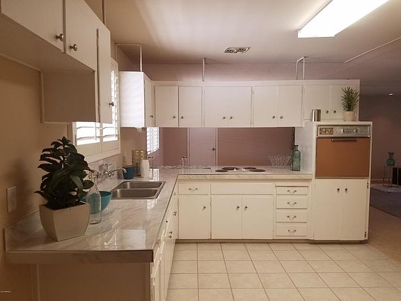 This house features 4 bedrooms & 2 bathrooms, huge family room, Wooden Shutters!! Storage Shed, Huge Lot, Block Fencing, Extended Covered Patio includes bar for backyard entertaining! 1 car garage and 1 carport, RV gate & RV parking. Mature trees and grass all around. HUGE LOT!!! Great neighborhood and schools and fairly close to I-10, the 101 and the football stadium complex.
