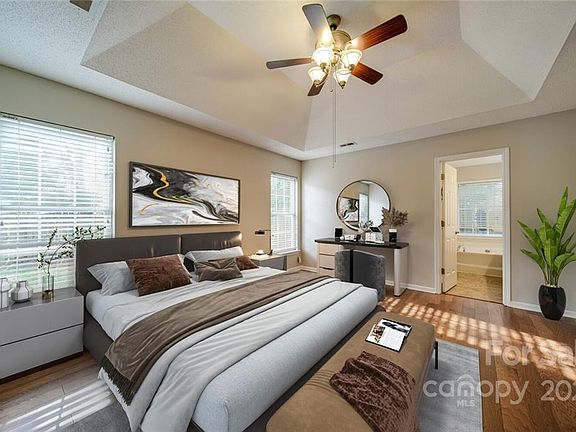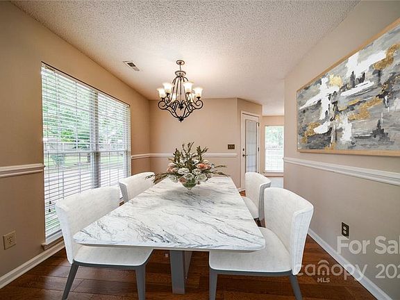 Welcome home to Buckingham! This 3 bedroom 2 full bath house is just what you have been looking for. Newer engineered hardwood floors throughout most of the home. Family room with gas fireplace, vaulted ceiling and lots of natural light. Formal dining room and eat in kitchen offer options. The kitchen cabinets have been refinished, to compliment the granite counters and stainless appliances. Primary bedroom includes a large walk-in closet, and beautiful bath with garden tub and separate shower. Two additional bedrooms and full bath with updated tile shower. Enjoy mornings on the screened porch, overlooking the large beautiful backyard and stamped concrete patio. BRAND NEW HVAC, interior paint 2022. This location is fantastic, with nearby grocery, restaurants, and other conveniences. Close to 485 and several golf courses. Highly rated schools and proximity to Matthews, Mint Hill, and Indian Trail make this house a sure thing! Transferrable Home Warranty is included!