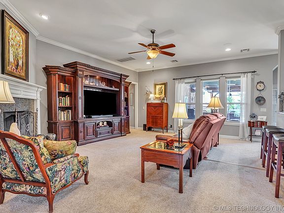 Wonderful patio oasis upgrade in 2023. Relax and enjoy the beverage of your choice in the evening overlooking the pond to the east, or coffee in the morning looking at the pond to the west. The chef inside you will love the BEST pantry you might ever see. The kitchen and breakfast nook overlook the living room. Neighborhood park, pool and splash pad! Master and 2 bedrooms down, Upstairs is a 4th bedroom (or a fantastic game room?) and a full bathroom. Newer roof, new water tank January 2023. Instant hot water at the kitchen sink. Close to schools, golf, highway access and only minutes from Broken Arrow’s Rose District. Vaulted Ceilings, great attic space (ample storage) and so much more!