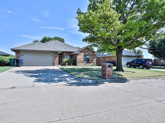 Price reduced, updated photos, fresh paint throughout the house, new kitchen (sink side) countertop is on order. Peirs have been installed by the Oklahoma Foundation. This wonderful HOME is in a Great neighborhood, in a convenient location, and is 1/2 mile from Tinker Air Force. all of the other great things the home has to offer then set up, you're showing today. Upon entering the home very large living room with new tile in 2018 and a gas fireplace. The kitchen has updated New Ikea cabinets in 2022, an electric stove, a dishwasher in 2021, and a microwave. This 3-bed home has 2 bedrooms and a bathroom on one side and a Primary bedroom and ensuite bathroom on the other side. The primary bathroom has a double sink vanity, a separate jetted tub and shower, and a large walk-in closet. The middle bedroom carpet was replaced on 10-4-23 in the middle of October. The home was professionally cleaned, and all title and carpet were cleaned as well by Sooner Carpet on 10-30-23. The Water heater was replaced and plumbing was added as well to make sure up to code. The backyard has a chain link fence all around, and a covered patio with a fan. Kitchen Fridge and Garage Fridge stay with the home as-is. The fire pit in the back is perfect for Fall weather and entertaining family. The seller is offering a 14-month home warranty.
