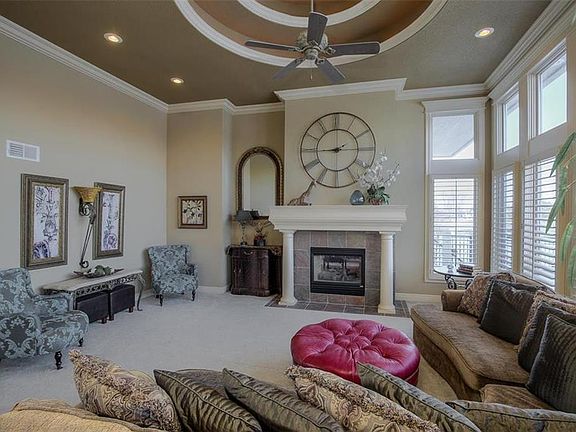 Lakefront Dream Home w/Exceptional Outdoor Entertaining Area! Huge Investment on Fabulous Outside Entertain Space while taking in Breath-taking Lake Views:Outdoor Kitchen,Gunite Pool, Water & Fire Features, Hot Tub, Firepit, Trex Decks, Flagstone Patio..Every Family Gathering/Party will be at your home!This Custom Home has beautiful Architectural Design & Finishes:Custom Taller Doors, Amazing Trim Pkg & Ceiling Designs,Columns,Natural Stone-Travertine Flrs,Custom Cabinetry,Plantation Shutter,Bathrm Radiant Flr Heat