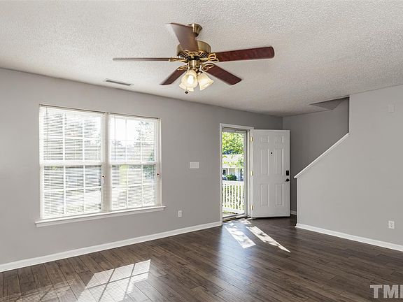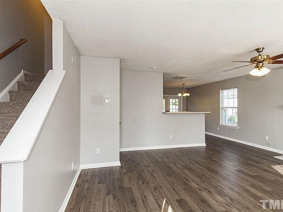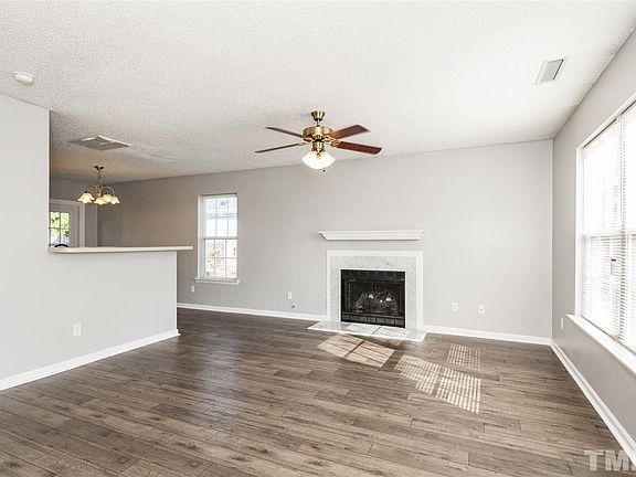 Charming Home in a beautiful neighborhood.This open floor plan features Large family room w/ 2 big windows! Spacious kitchen with tile backsplash and island! Downstairs laundry hookups! Great sized master bedroom w/ cathedral ceiling and private bath! Good sized secondary bedrooms! Private fenced backyard w/ storage shed just 5 minutes from Triangle/540. Dining area has french doors leading to large private backyard. New Carpet, New Roof, New beautiful laminate floors, New Light Fixtures. Freshly Painted