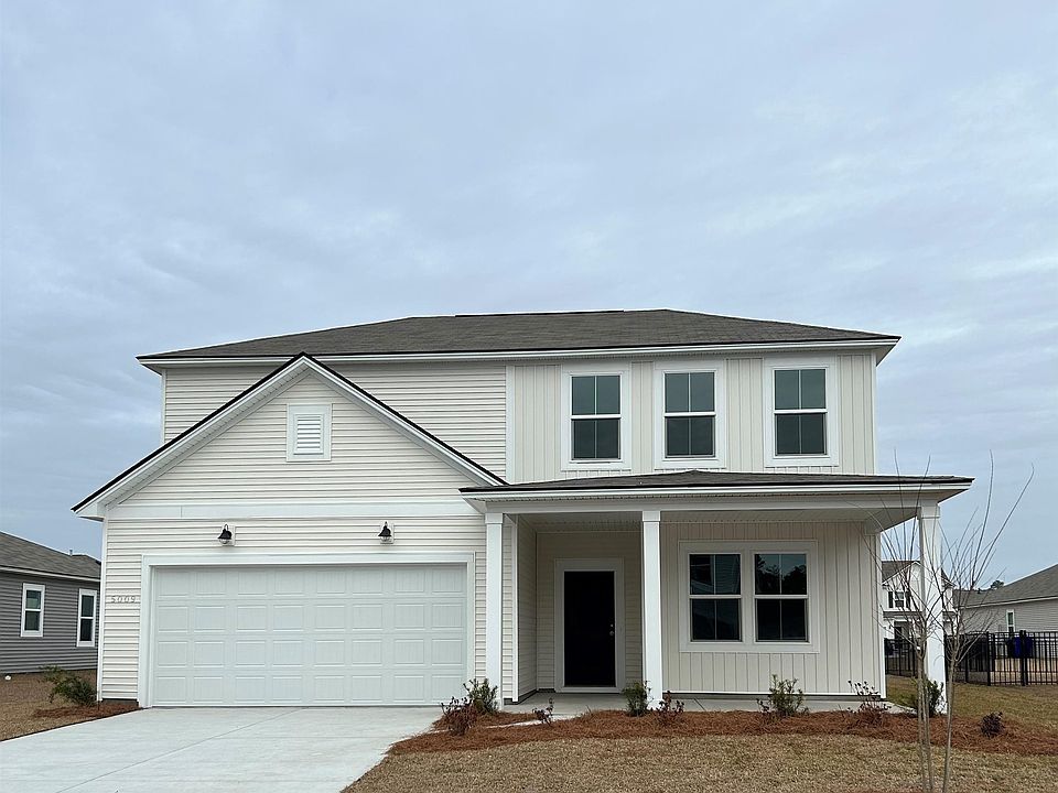 This new construction home is move in ready! 4BR / 2.5BA + Upstairs Loft + Downstairs flex space, @ 2322 sq ft. The Rosella is a beautiful open 2-story layout with 4 Bedrooms as well as an upstairs loft for additional living space or game room. The downstairs lends itself to entertaining, with conversation flowing easily from the kitchen to the café dining area and comfy gathering room. The spacious owner's suite has double vanities in the bathroom and a large walk-in closet. Luxury vinyl plank flooring in main living areas, bathrooms, and laundry room. We include an exceptional 10yr Home Warranty with 5-year water infiltration and leak protection as well as great incentives for working with preferred lender. ...ask for details! It's easy to see why you would want to call Heritage Preserve home with its close proximity to Conway, Myrtle Beach and Little River and the added appeal of forest and pond homesite views. In addition, the extension of International Drive is now completed and less than two miles from the community. Photos are of a model home for representational purposes only, and may show different options and upgrades selected.