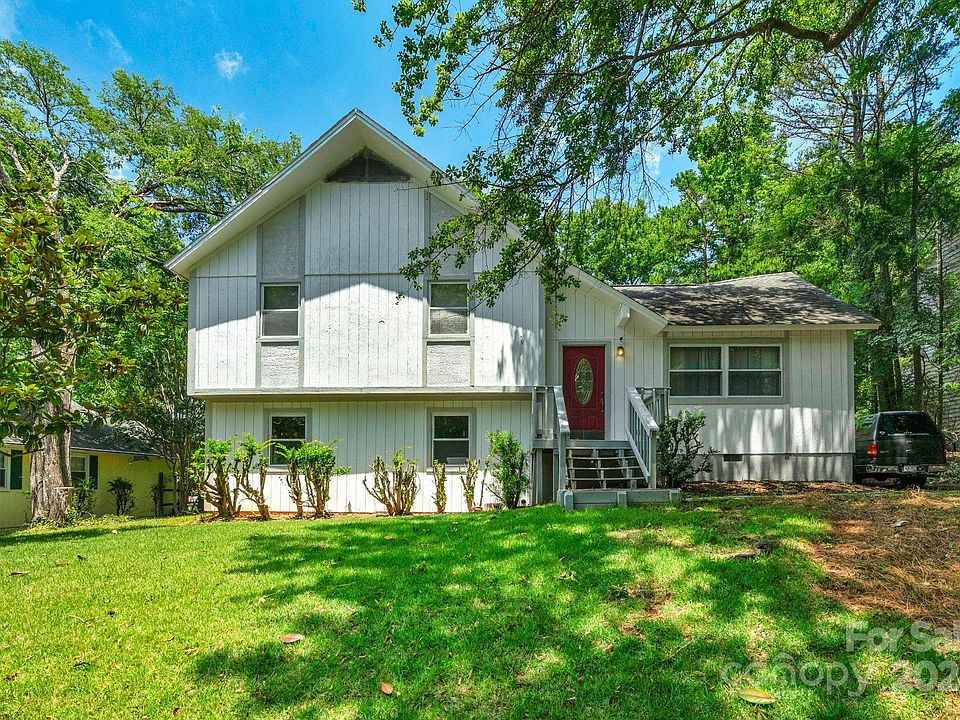 ***Back on the Market. Buyer got cold feet. Great 4 bedroom 2.5 bath Tri-Level in highly sought after Tega Cay. One of the few level lots in Tega Cay that backs up to hole #1 on the Golf Course. Home has an above ground pool with new liner and a wrap around deck all hidden in a wooded private back yard. Great outdoor space with a screened porch on the back overlooking the pool and golf course. This Contemporary home has been recently painted and is ready for the next owner. Primary Bedroom has an en-suite bath with an entrance to screened porch. Crawl out of bed and have your morning coffee without having to see the rest of the household. Don't be late to see this house. ***Home has a Polynesian Style Roof***. Fort Mill Schools.