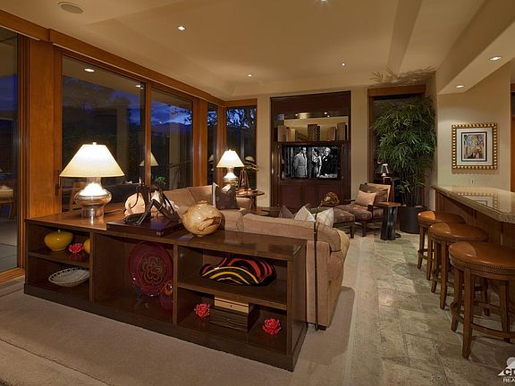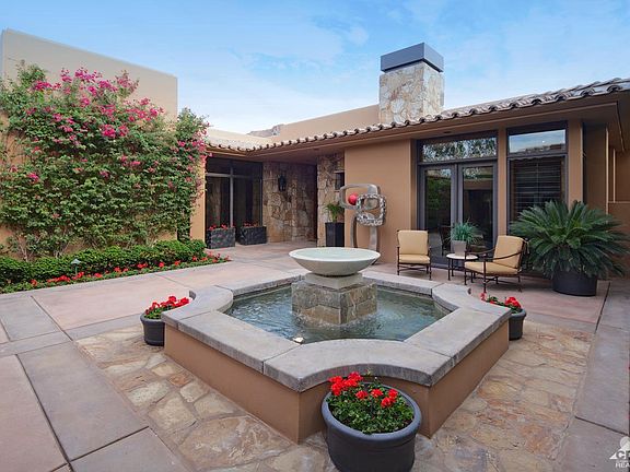 Exceptional South views overlooking an expanse of the 15th Fairway to dramatic Santa Rosa Mtns. Custom built by Keith Reese w/quality interior/exterior design details throughout every inch of this home. Gardens, a soothing fountain welcome you into the entry courtyard, w/a private detached casita for guests. Spacious indoor/outdoor living areas provide the ultimate in relaxing and entertaining. A gourmet kitchen w/a large island opens to spacious dining and sitting areas. Adding to the warmth and understated elegance of this home is a cozy sitting area near the fireplace, a comfortable lounging/media area, as well as seating at the counter to visit with the chef! Incredible master retreat w/stunning views/seating area/media built-ins/separate office/master bath w/TV behind the mirror! The wood-paneled den/office is exceptional w/fireplace, exquisite built-ins, inviting seating for two/doors open to the fountain and gardens. Retreat to great pool/spa/dining and lounging on patio!