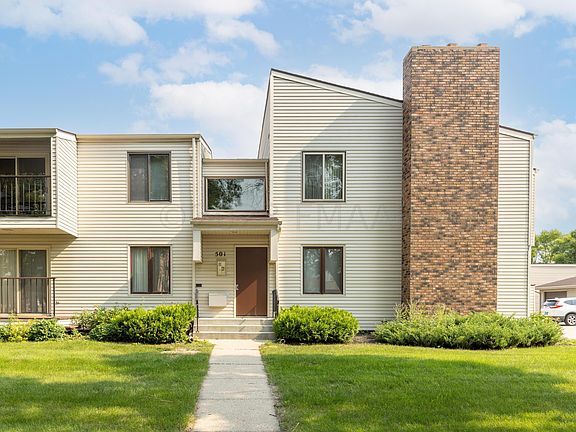 Great 2 bedroom 3 bath condo with many updates in a quiet cozy area of downtown. Master has 3 closets and own private bath. Spacious south facing balcony. New carpet, stove, paint, light fixtures, shower in lower level to make 3/4 bath, along with kitchenette area with additional sink and fridge. 570 (A) SF Lower level Bonus area separate from unit, could be used for storage, a family room Sewing room, yoga, or family/friend gatherings. Laundry chute from upper level to laundry room. Garage right behind back entrance door. Extra parking in back. Close to downtown and NDSU. Secure building with intercom system. HOA $270.15 includes snow removal, lawn care, bldg maint. and internet. Small Pets allowed.
