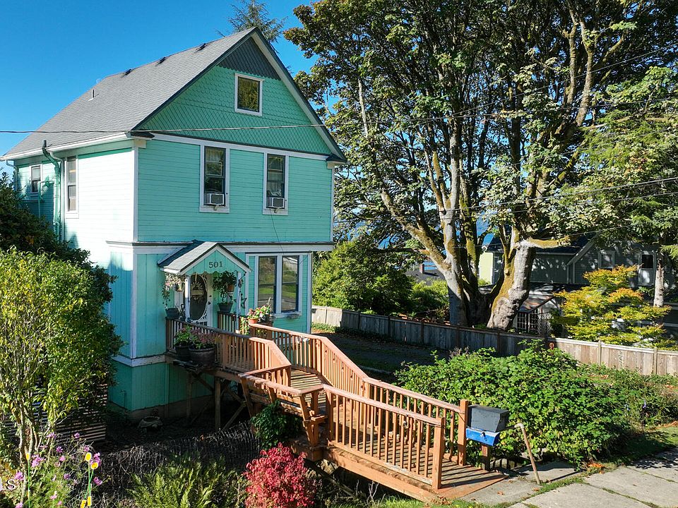 Located in East Astoria, this charming 3-bedroom, 1.5-bath Victorian home features stunning Columbia River views and a daylight basement offering versatile bonus space. A rare find, the property includes a detached two-car garage and is within earshot of the iconic sea lions. You'll be just a short walk from the ''Kindergarten Cop'' elementary school, the scenic Riverwalk, and the famous Goonies house—a must-see for film lovers. The roof was replaced in 2017, and the kitchen has been recently updated, blending modern comfort with historic charm. Less than a mile from the hospital and close to local amenities, this home offers both character and convenience in one of Astoria's most beloved neighborhoods.