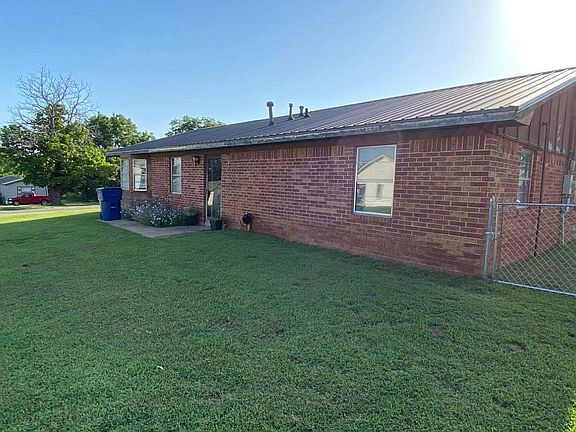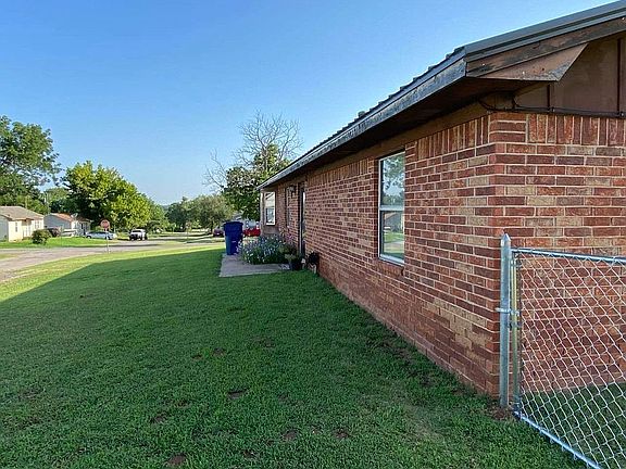 3 bed 1 bath brick home on a large, well-maintained corner lot. Home has great potential and would make a great investment home or starter home. Property has a chainlink fenced backyard, storm shelter, large 2 car carport covered parking and a large shop building with electricity. Newer metal roof still under warranty. House is being sold as is. Open to offers.
