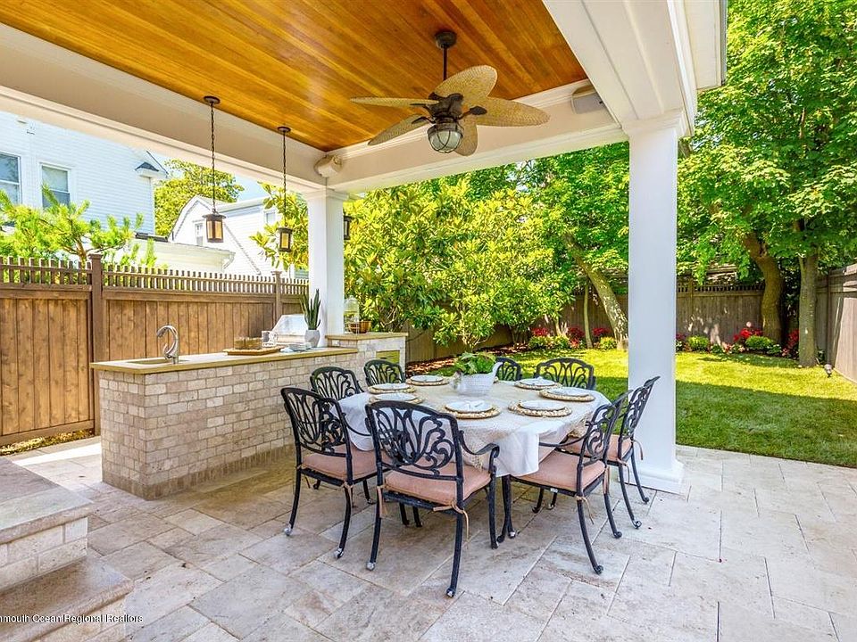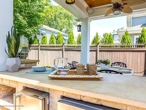 This turn-key beach home in coveted Avon-by-the-Sea is perfect for entertaining with two breezy front porches, a private backyard oasis complete with outdoor kitchen, covered travertine patio, and fenced-in yard. It has 3 bedrooms, and 2.5 baths plus a large outdoor shower. The en suite master bedroom with dual sinks and spa shower has cathedral ceilings, 3 closets, and a built in desk space for those working from home. The 2nd bedroom also has cathedral ceilings and leads to the second floor sun deck. All three bedrooms have custom closets. The kitchen boasts an eat-on peninsula, has a new fridge/dishwasher, and overlooks a living room/dining room combo that leads to outside entertaining spaces in both directions. Live at the beach this summer!