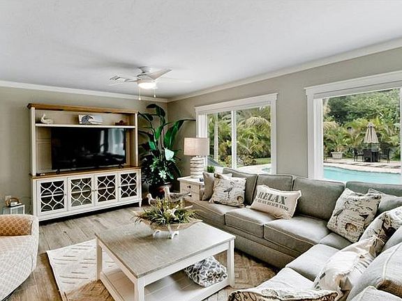 Just bring your toothbrush, your board shorts and bikinis, and you're already home! This beautifully remodeled island retreat on a jumbo lot in Holmes Beach has it all: completed in 2017 by Wash Construction; new American Beauty heated pool and spa; new kitchen and baths by LaPensee Plumbing and Progressive Cabinetry; new electric and plumbing, new tile floor throughout; new windows by Grayhawk, new AC by Air & Energy and new roof by Bringman. Really, you don't need to do a thing. Island inspired furnishings are not included, but may be available for the right offer. And there's even a place for your boat, via a private walkway behind the home to the end of the canal. The large double garage has room for toys, and there's a paver drive and front porch. From the glimmering pool and extensive (yet low-maintenance) tropical landscaping, including coconut palms and a springy Zoysia lawn - even the exterior has everything you may want or need to enjoy this spectacular retreat. Located in Holmes Beach's R1-zoned Bay Palms subdivision, you may rent this property (if you can bear to have anyone else in the place!) for a minimum of 30 days at a time. Ask your agent to make an appointment to see this special home today!