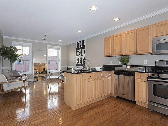 Welcome home to this beautiful 2 bedroom 2 bath condominium at Prospect Hill. The modern kitchen features stainless appliances, good cabinet storage, and granite breakfast bar. The Master bedroom is spacious, with a private bath and a bay window which offers a partial view of the Empire State Building.The second bedroom is perfect for a guest room, baby's room or a home office. Additional amenities include washer-dryer in the unit, central air, hardwood floors, and a garage parking spot. This is a popular, well-maintained building with a well-equipped exercise room, a package center (completed in July 2019), a new lobby (completed in July 2019) and a beautiful landscaped courtyard. Located near Columbus Park and Shop Rite. The NYC commute is quick and convenient by bus or LightRail - both within 3 blocks. Don't miss this one!