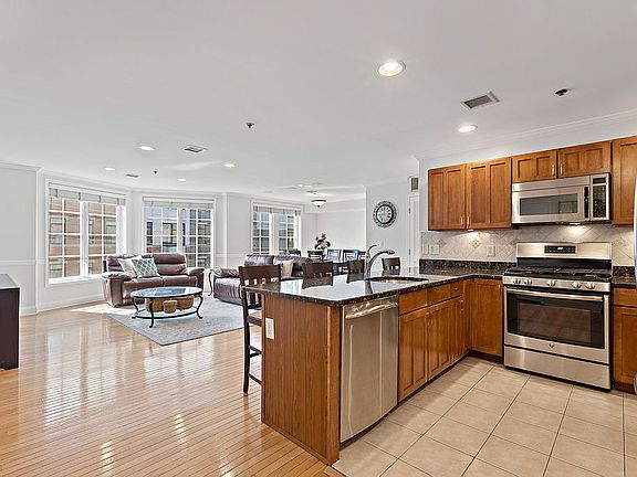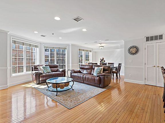 Stunning and sun-drenched 3BR / 2BA corner unit in sought after Prospect Hill. This amazingly spacious1406SF entertaining space includes a bright open floor plan with a modern kitchen with huge breakfast bar, granite counters and SS appliances. Large and sunny living room with oversized windows and wood blinds. Expansive dining room area with plenty of space for 6+ table with custom built bar. The large master BR features a custom walk-in closet and a completely renovated oversized ensuite bath with huge walk-in linen closet. Central air conditioning, recessed LED lighting, built-in surround sound, beautiful hardwood floors, custom molding, wainscoting, central air, in home laundry and 1 deeded parking spot in heated garage. Building amenities include elevator, large fitness center, beautifully landscaped courtyard patio area, secured package locker system, a newly renovated lobby and new roof in 2016. 2 blocks from light rail, NYC bus, ferry, shopping and parks. Schedule a private tour now before itâs gone. Note: The home is currently used as a 2BR plus den and can easily can be converted to a 3BR plus den, OR a 3br plus DR - see included floor plans.