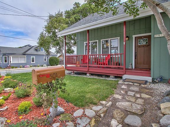 This delightful cottage exudes happiness from the moment you lay your eyes on it. Located on a blocks-to-town light and bright corner lot, this sweetie has been lovingly re-imagined and updated exhibiting oodles of character and charm inside and out. Features include walls of double paned windows, open beamed ceiling, ground floor bedroom, a distinctive spiral staircase that leads to second floor great room/bedroom(s), attached one car garage with storage area and peeks of the bay from the front porch and second floor. Recent improvements include new wood flooring and carpet, updated bathroom elements, new interior and exterior paint, roof and gutters, rebuilt balcony, new fencing, landscaping, foundation and French drain. This treasured jewel invites you to appreciate its great location close to highly rated schools, downtown Pacific Grove and its unique home town vibe, coffee shops and cinema, the scenic Monterey recreation trail, Lover's Point Beach, historic Cannery Row and the world class golf courses of Pebble Beach.