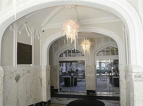 Lofty 1 Bedroom in converted school house. Unit features 12 ft ceilings, open layout with large foyer entrance, Stainless steel appliances, large granite kitchen island- great for dining, marble tile bath and hardwood floors throughout. Elevator building with grand marble entrance, exercise room, courtyard, W/D room and bike storage. Laundry and exercise room is on same floor as unit.