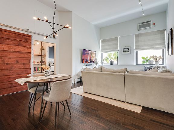 Exceptional modern loft living at the coveted Adams Square. This well laid out 2 bed/2 bath features 12 ft ceilings, hardwood floors throughout, additional storage, deeded parking, in-unit w/d & has been thoughtfully designed with exceptional updates that truly make this home stand out. The kitchen features stainless steel appliances and granite countertops that lead into an open and inviting living and dining room space. The primary suite welcomes you with a custom barn door that opens up to a sizable bedroom, walk-in closet and an updated en-suite bathroom. The building itself is a converted 1870s school house with a landscaped courtyard, additional laundry room, gym & conveniently located to all Hoboken has to offer!