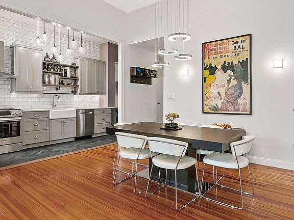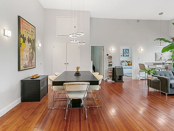 Chic penthouse unit at Adams Square that lives very much like a loft featuring awesome 12 foot ceilings, refitted double paned windows, and a stunning and all-encompassing open kitchen, dining and living area is replete with two private bedrooms and two full baths. Gorgeous kitchen recently remodeled by Robert Jenny Design and subsequently magazine featured boasts a hybrid country and industrial flair with gray cabinetry, farmhouse sink, white subway tiling, and Bosch appliances. Gorgeous remodeled baths feature Carrara marble shower walls, Kohler soaking tubs and beautiful vanities. Home also features a new built-in library and high end smart light fixtures throughout compatible with most smart home applications such as Apple HomeKit, Amazon Alexa, and Google assistant. This one of a kind home also boasts hardwood floors throughout, Ecobee thermostat, a new boiler, recently replaced AC wall units in both the living area and the master bedroom, two ceiling storage units, and one coveted, covered parking spot! Adams Square, a striking and memorable retro-fitted schoolhouse, is one of Hoboken's most unique residences spotlighting its Hoboken heritage of classic architecture, and grand marble entrance lobby and winding first floor marble staircase. A truly unique midtown Hoboken elevator building Adams Square boasts a full sized on premises gym, an extra-large laundry room with multiple washers and dryers, and a beautiful and serene common outdoor courtyard. Equidistant to many desirable Hoboken amenities, an easy distance to the Hoboken PATH station, nearby to bus lines to NYC, and many local restaurants and eateries, Adams Square is a convenient and special Hoboken residence and location. A very special home to be called especially yours!