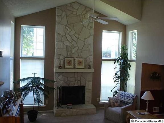 Wonderful Contemporary Colonial with Fabulous Two Story Stone Fireplace and Cathedral Ceiling Makes a Statement-Formal Dining Room-Light & Bright Huge Eat-in-Kitchen,Center Isle and Plenty of Cabinets-New Ceramic Tile Flr and Slider to Deck-First Flr Den/Office-Mstr Bdrm has Walk In Closet,Private Bath,Whirlpool Tub,Stall Shower & Dble Sinks-Finished Bsmt Freshly Painted,New Berber Carpet&Great Storage-Large Two Tier Deck,Private Yard,Sprinklers & 2C/Garage-Close to Pkway,I95,Beaches & Reservoir