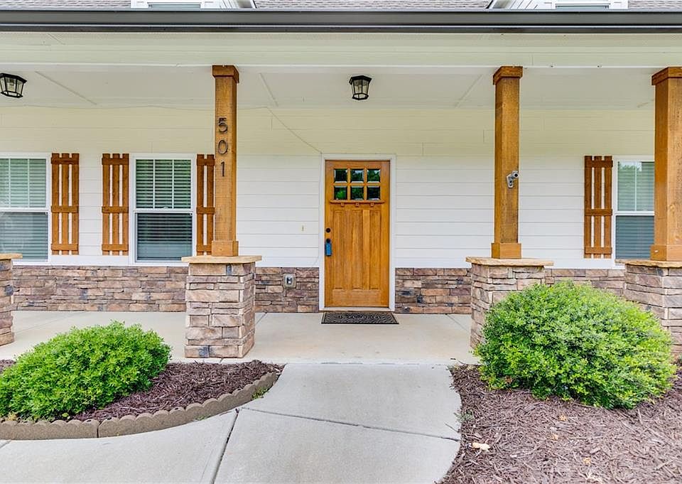 Welcome to your dream home! This 2200 square foot Craftsman-style ranch offers 4 bedrooms and 3.5 bathrooms, perfectly blending elegance and functionality. The heart of the home is a stunning kitchen, featuring an island, granite countertops, and soft-close cabinets. The oversized primary suite includes an ensuite with a double vanity, separate tile shower, soaker tub, and his and her walk-in closets. Above the garage, discover a versatile teen suite or roommate space with a walk-in closet and full bathroom, offering privacy and comfort. Upstairs you will also find two generously sized bedrooms come with ample storage and a full bathroom, ensuring space for everyone. The oversized garage provides abundant storage and includes a convenient laundry room. Situated on a spacious corner lot in a cul-de-sac, this home features a split bedroom plan and open concept living, creating a seamless flow throughout. Enjoy year-round relaxation in the 4- seasons back porch, perfect for unwinding and entertaining. Don’t miss this opportunity to own a home that combines style, space, and modern amenities in a desirable location. Schedule your viewing today!