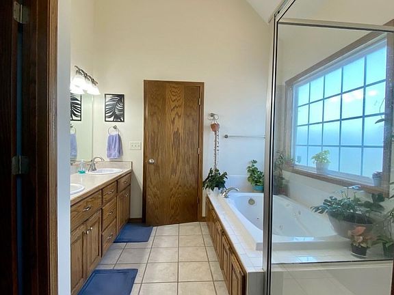 - Interior Features: Cathedral Ceiling, Garage Door Opener, Jetted Tub, Pantry, Security System, Walk-in Closet(s), Walk-in Shower, Ceiling Fan(s), Washer/Dryer Hookup, Eat-in Bar, Foyer, Smoke Detector(s), Formal Dining Room, Kitchen Island, Window Coverings - Blinds All, Water Softener - Owned