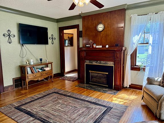 Gas fireplaceHardwood floorsOutdoor patio areaFruit treesAsparagus rhubarb and raspberries