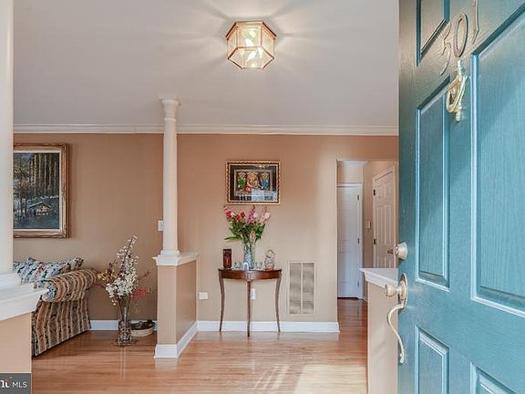 This partial-brick front, end-unit townhome is situated in an ideal, cul-de-sac location where lush green tress provide privacy and beautiful views! Attractive details such as crown molding, decorative columns and glossy hardwood floors are not only eye catching, they add the perfect finishing touch to the formal, open-concept living and dining rooms. The hardwood floors continue down the hallway and into the 2-story family room, where the windows stretch up to the cathedral ceiling filling the room, adjoining kitchen and second floor hallway with plenty of natural light! The gas fireplace is nestled between the tall windows, creating an amazing feature wall that will WOW you every time! The kitchen provides an eat-in area with views of the backyard and access to the back patio through sliding glass doors. Cherry wood cabinets, SS stove and microwave, and updated white tile flooring give the kitchen a contemporary feel. There is a powder room on this level with a lovely pedestal sink and updated mirror. You won't be disappointed with the master bedroom with its vaulted ceiling, dual walk-in closets and a master bath complete with a Jacuzzi tub with marble surround and dual sinks! There are 2 additional good-sized bedrooms on this level, as well as a hallway bathroom. Considerable extra living and storage space is found in the finished basement! This home is in close proximity to NYC/Philly trains and minutes away from major highways, shopping, restaurants and downtown Princeton.Award Winning South Brunswick Schools