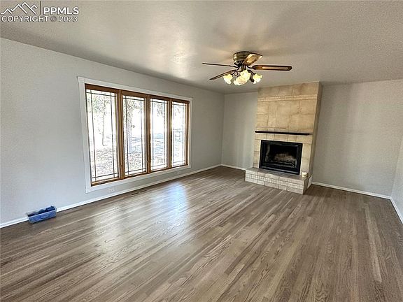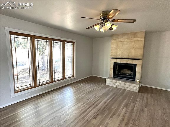 5 bedroom, 3 bathroom ranch style home, 1 car garage in established neighborhood on large corner fenced lot. Kitchen has new sink and faucet, newly painted kitchen cabinets and new vinyl plank flooring. New interior paint throughout the home. Living room, dining room, and main level bedrooms have refinished hardwood floors. Cozy wood burning fireplace in living room. Bathrooms have new vinyl plank flooring and a new bath tub. Master bedroom and Bedroom #4 have adjoining bathrooms. Basement family room and 2 basement bedrooms have new carpet. Unfinished basement storage room is 11 x 25. There is additional square footage in the 8 x 22 sunroom. Roof has been evaluated and minor roof repairs have been completed. Mature trees with fencing in front and back. RV parking on side of home on a 15 x 45 concrete pad or it could be used as a patio. Home has so much potential. Close to Fort Carson, schools and shopping.