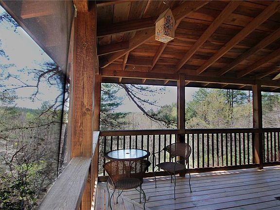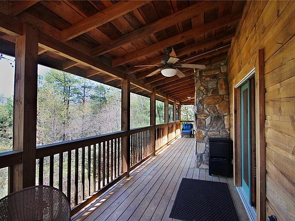 This beautiful 4 bedroom, 2 bath cabin is situated on a large, private lot that spans across nearly 6 acres! The captivating mountain view can be seen from the wrap-around porch that is screened in on the back side of the home. Take a walk behind the detached garage and you'll find your very own "she-shed" complete with a small porch and a fenced in garden area. The building (or "she-shed") is a great place to have an extra space to work or even to use as the best playhouse a child could imagine! Inside the home you will find a cozy living area, a kitchen, full bath, and a bedroom on the main level. The master bedroom and another full bath are located in the loft area up the stairs from the living room. The full, finished basement has an additional living space and two more bedrooms that each open up to a patio outside which face the stunning mountain view. Dream of having horses? This property is set up for just that! There are 2 riding rinks on site. One is approximately 60X120 ft and the other is round and approximately 70ft in diameter, complete with a two-stall barn! There are also two areas that are fenced in with gates (the sizes are approximately 3/4 acre and 1 1/2 acres). Upon further exploration, you'll find a trail that is large enough for horses or ATVs. The trail connects to each riding rink and even goes down to the creek on the property as well. The possibilities are endless both indoors and out at this mountain retreat!