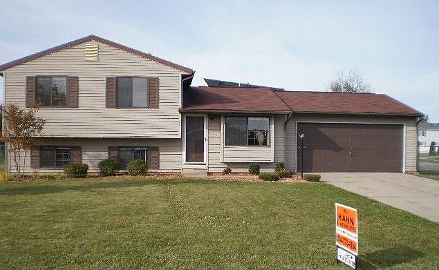 This well cared for home features 4 bd 2 bth and vaulted ceiling in living room, patio door off dining room leads to patio area with large fenced yard, family room in lower level, 2 car attached garage, newer metal roof, galley kitchen, and so much more. Great starter home. Drapes in the living room, small statue in front of home, and washer and dryer will not stay.