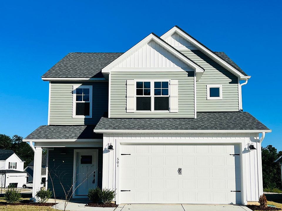 The Hamel is an attractive craftsman-style open floorplan home. The lower-level displays a spacious family room, a large modern kitchen with a sizable island that also doubles as additional casual dining space, and a rear covered porch which is accessible from the family room. Other lower-level features include a partial bathroom, a generous kitchen pantry with wired shelving, two closets, and a drop zone.
