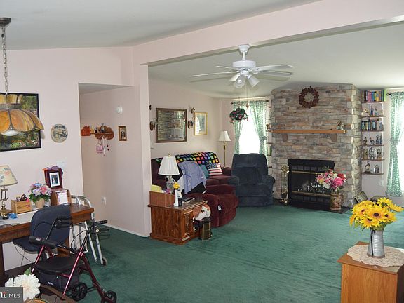 This lovely three bedroom, 2 bath home has so many features that will appeal to you! As you enter the home, you will be greeted by a large Living Room that opens to the adjoining Family Room, which is centered around a beautiful stone, wood burning fireplace. A cathedral ceiling brings the room together in dramatic fashion. To your left, 2 comfortably sized bedrooms with plentiful closet space await you with a full, shared bath. To the right of the Family Room is an inviting Primary Bedroom where you will find an amply sized walk-in closet, and a Primary Bath with walk-in shower stall, double sinks, and laundry facilities. The Kitchen includes a huge amount of cabinet and counter space where the holiday cookies can be made with the help of the little ones. Stainless steel refrigerator and dishwasher remain for you. A double-bowl sink, desk area, skylight and more make the Kitchen a great place to hang out. Beside the Kitchen lay a Dining Area where you can enjoy a meal and catch up on the day. As if that wasn't enough, an enclosed porch and covered deck are available for relaxing after a long day. Lot rent is $575/ month, and includes water and sewer, and trash.