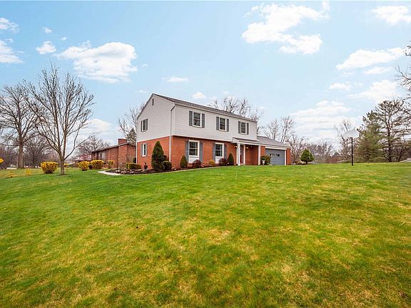 Well maintained and lovingly cared for home on a double corner lot (almost an acre) in the center of Peters Twp. Warm Hardwood floors throughout the home. Spacious and freshly painted Living Room with natural light that flows into the Formal Dining Room. Kitchen with newer appliances with exception of the stove. Cozy Family Room with gas Fireplace and accent ceiling beams. Sliding door leads you outside to large, covered patio 17X15 to enjoy the double lot for family entertainment. Shed included in sale. Powder room on the first floor. 2nd Floor has 4 generous sized bedrooms and closets. Primary Bedroom has double closets and an En-suite with full bath. A hall bath is shared by the other 3 bedrooms. NEW Windows throughout 2021, Furnace and AC 2013. Large laundry and storage areas on the Lower Level. 2 car attached garage & driveway with extra parking. Close to RT-19 and I-79.