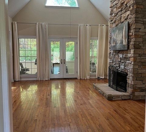 3 bedroom/2.5 bathroom with unfinished bonus room, large front covered porch, screened back porch, hardwood floors, luxury vinyl, and carpet. Vaulted ceilings, stone fireplace with gas logs, granite countertops, master on the main level with two additional bedrooms on the main floor, as well.