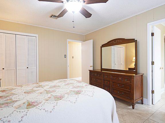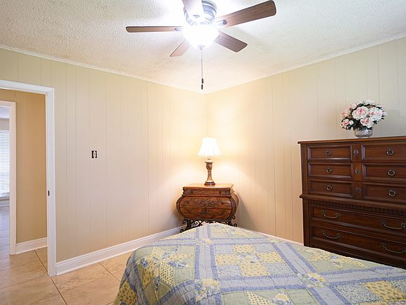 This is a 3BR/2BA custom-built home with only 1 owner nestled in a cul-de-sac of an, established neighborhood. Located 2 miles from I-10. Move-in ready! This home was well maintained over the years and has NEVER flooded. NO carpet, beautiful 16x16 porcelain tile floors throughout. Ceiling fans throughout the home including the guest bathroom. The living room was divided into 2 rooms: a TV/Media room and an office/nursery. The efficient kitchen has a counter with cabinets that separates the kitchen from the dining room and it includes a washer & dryer closet and a convenient pantry closet. The hallway has a linen closet and leads to the 2 bedrooms and the master bedroom & master bath. The den has a back door to the large covered patio. The huge backyard has a mature oak & a pecan tree.