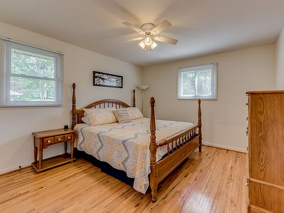 One Level lake Living! Lakefront with Dock! Hardwoods throughout. 2 car Attached garage w/ oversized detached Garage (boat will fit)